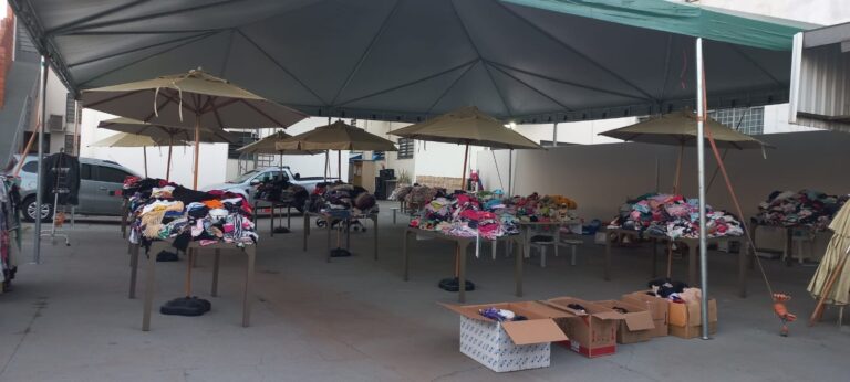 O bazar aceita também calçados: tênis, sandálias, chinelo, botas, sapatos sociais e infantis, sapatos femininos de diversos estilos